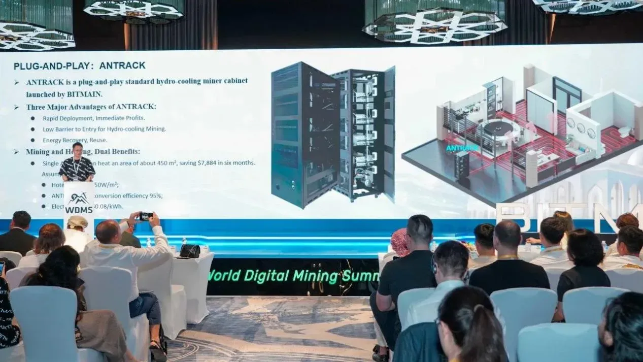 Dr. Jian Yao, VP of Mining Expansion at BITMAIN, delivered a speech on ANTRACK, a plug-and-play standard hydro-cooling mining cabinet, which has three major advantages: rapid deployment and immediate benefits; low barrier to entry for hydro-cooling mining; energy recovery and secondary use, making it a hydro-cooling mining solution that is ideal for the Middle East.